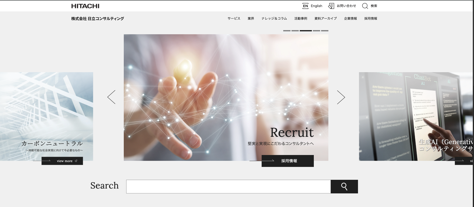 あらゆる業界においてデジタル技術を用いた提案をしており、コーポレートサイトでもコンサルティングサービスの根幹として「IT・デジタル」をベースとすることを標榜しています。
