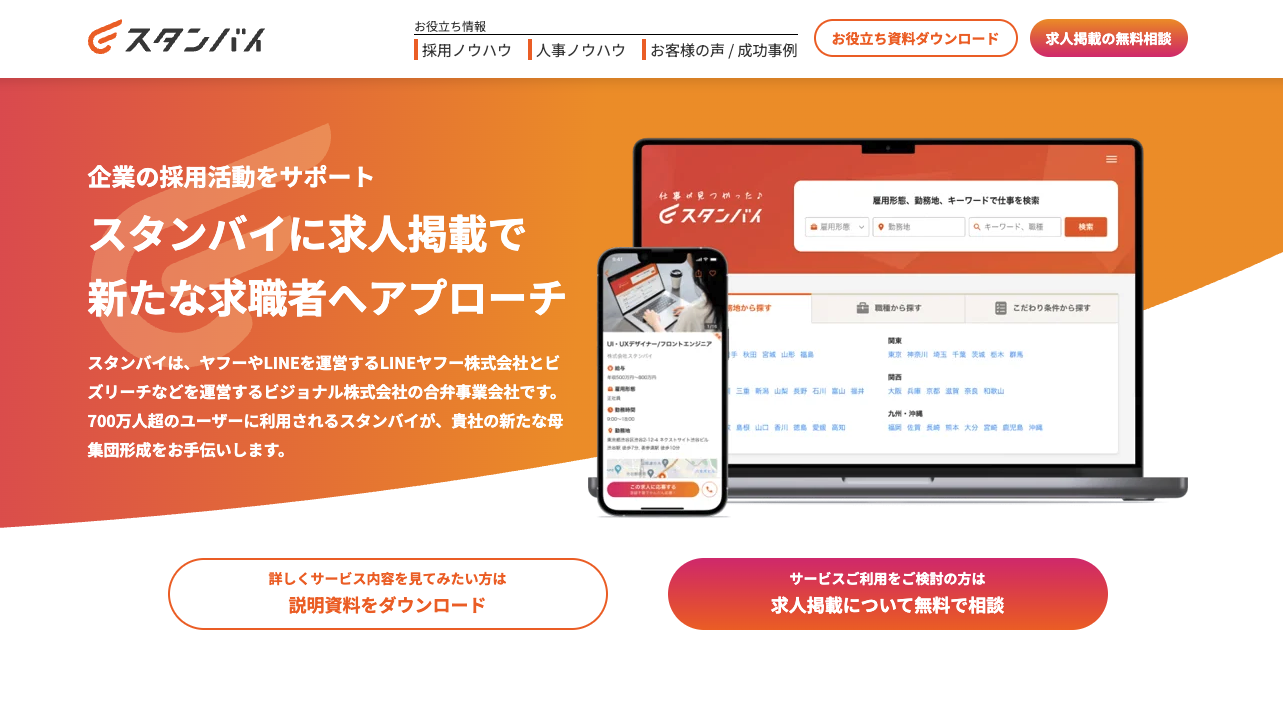 スタンバイは、スカウトやチャットなどの機能を備えた求人検索エンジンです。