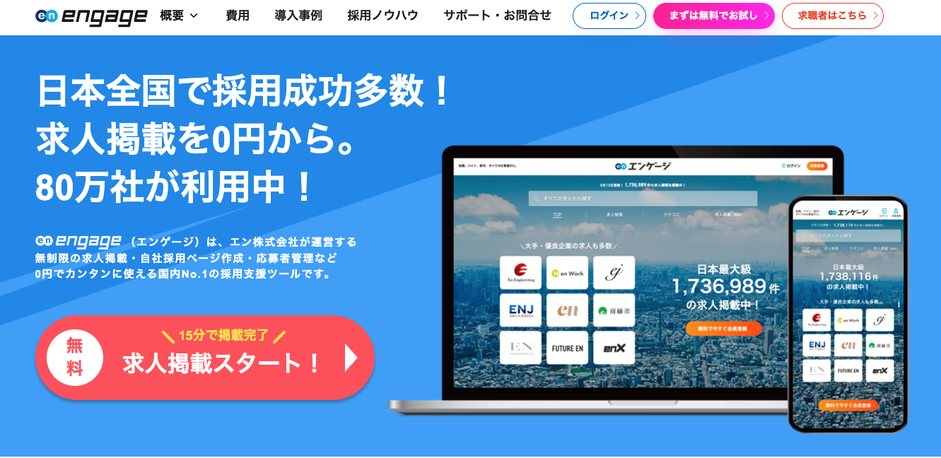 engageは、求人掲載から採用管理までをワンストップで担っている求人情報サイトです。