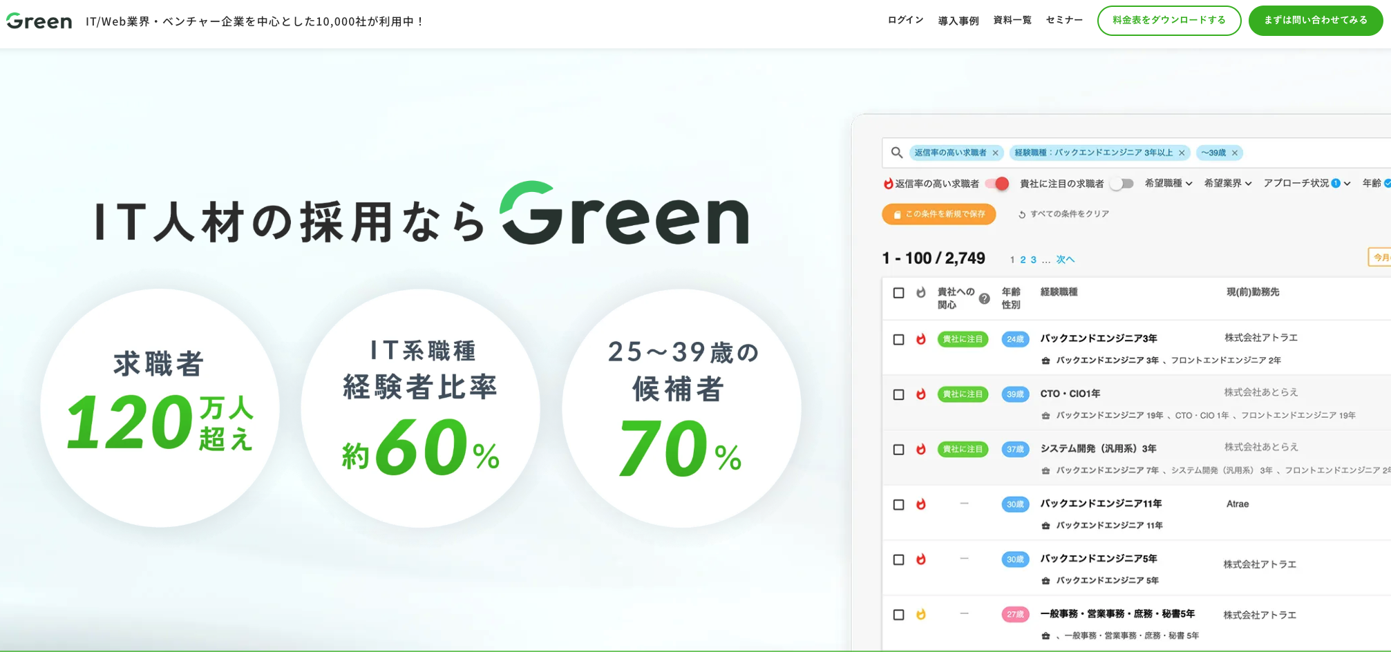 Greenは、ITやWeb関連の業界に特化した求人情報サイトです。
